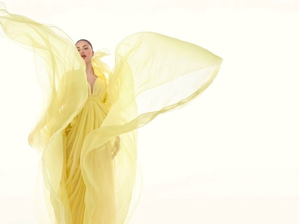 Solve Sundsbo’nun çektiği kampanyada yer alan model, sarı şifon elbisesiyle poz vermişti.