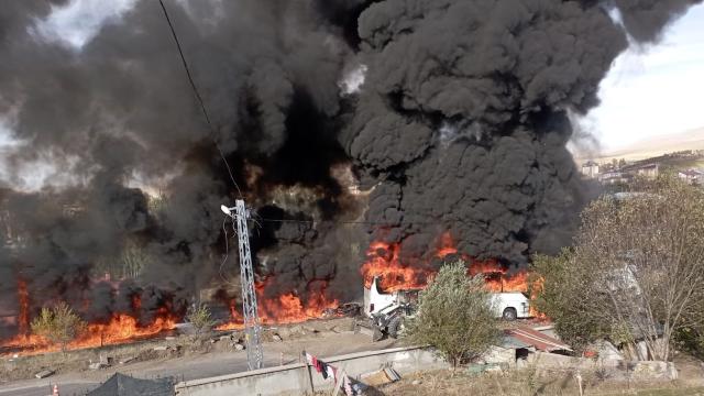 Tutak ilçesinde yolcu otobüsü ile yakıt yüklü tanker çarpıştı. Çarpmanın etkisiyle her iki araç da alev aldı.