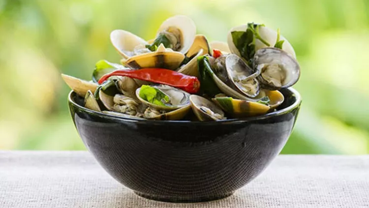 Derin bir tavayı orta ateşte ısıtın. Zeytinyağı, sarımsak ve kırmızı biber ekleyin ve 1 dakika pişirin. Domates, şarap ve defne yaprağı ekleyip 5 dakika kaynatın. Midyeleri ilave edin, 8 dakika daha pişirin. Midyelerin ağzı açıldığında hazır demektir.