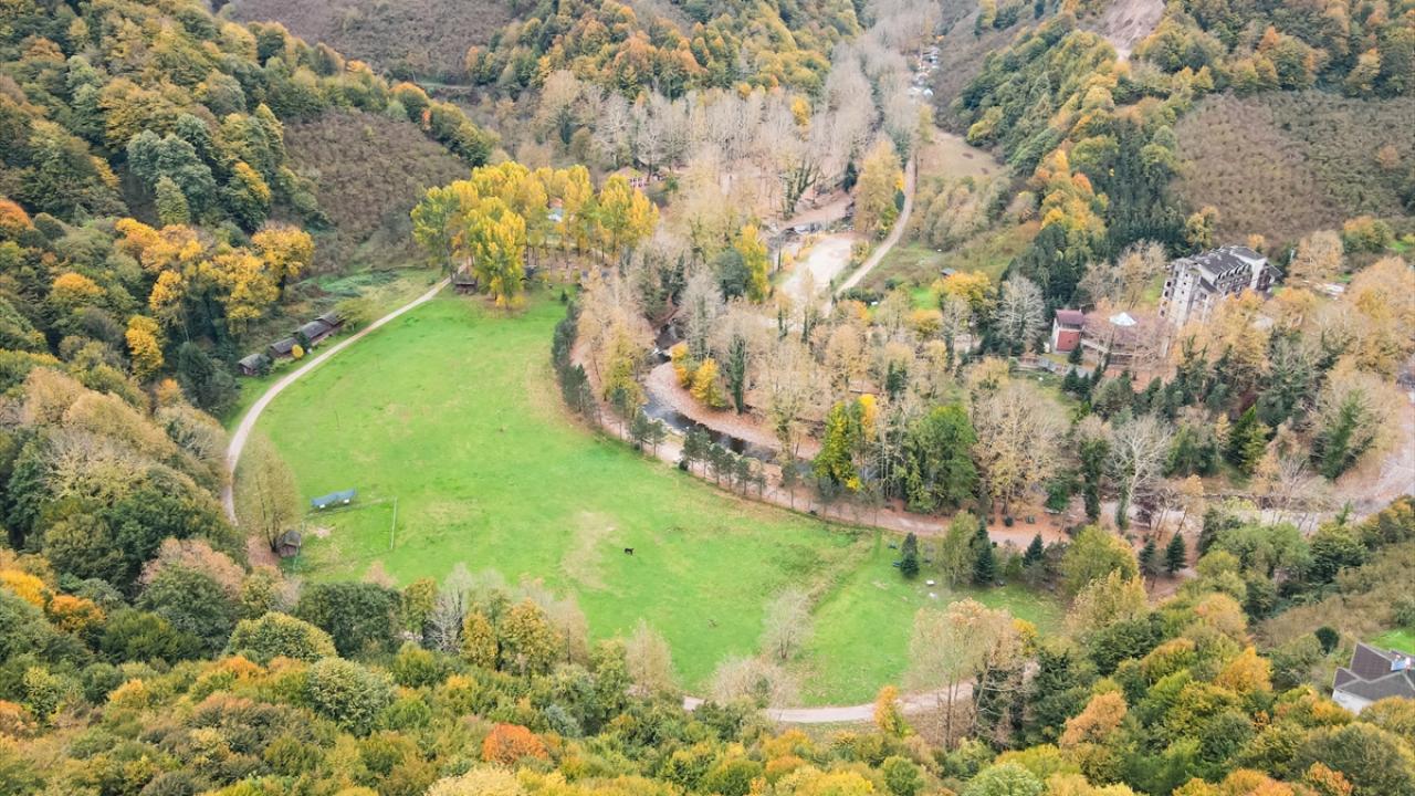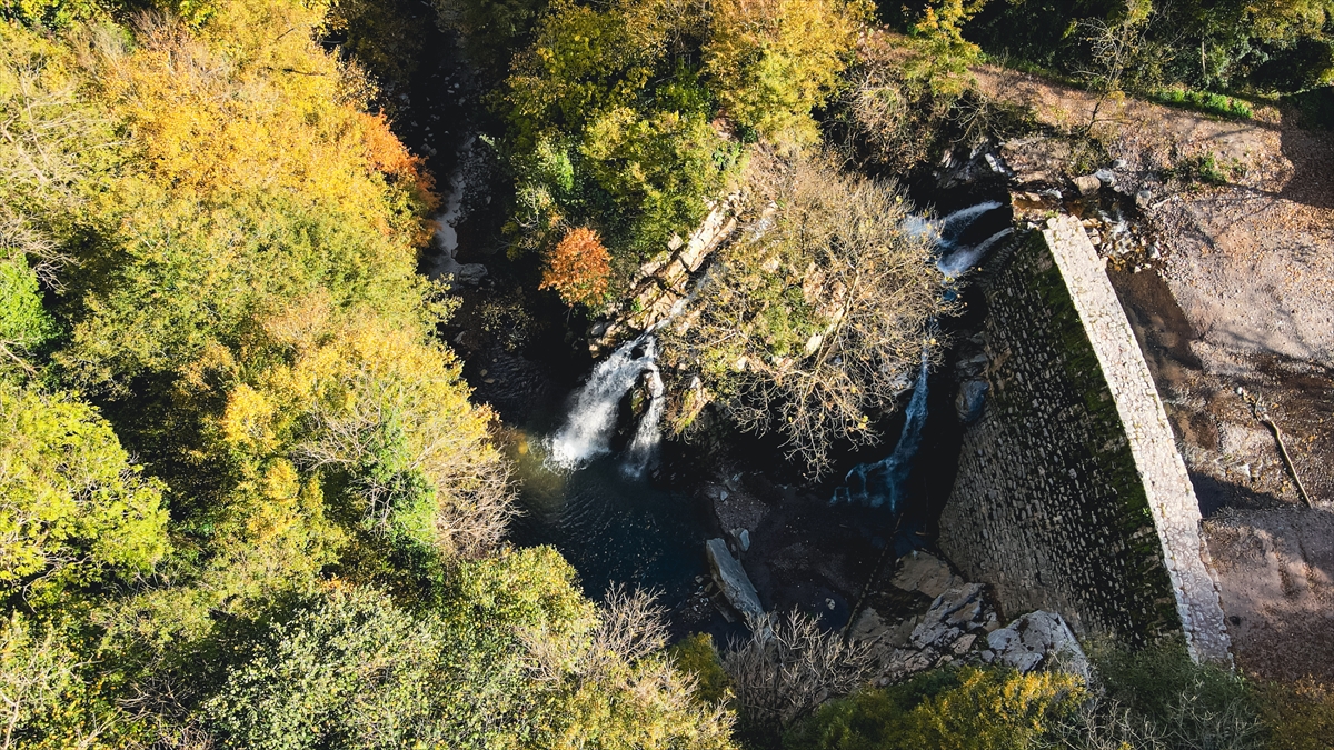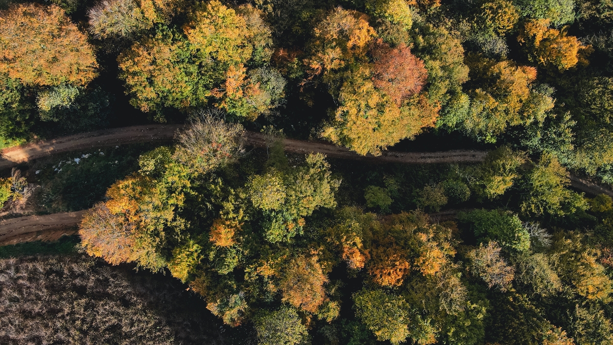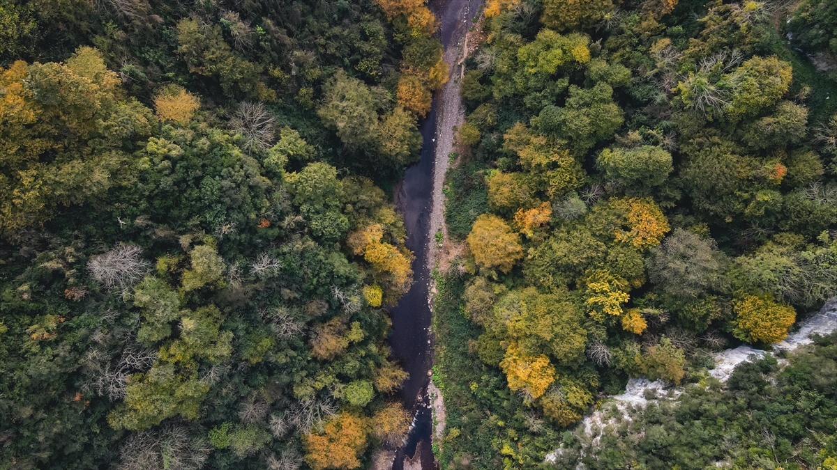 Sonbahar tonlarının hakim olduğu bölge, dronla görüntülendi.