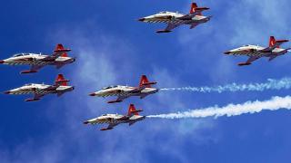 NF-5 A ve NF-5B tipi süpersonik savaş uçakları ile gösteri yapan filo 15 özel dizayn edilmiş savaş uçağı ile gösterilerini icra ediyor.