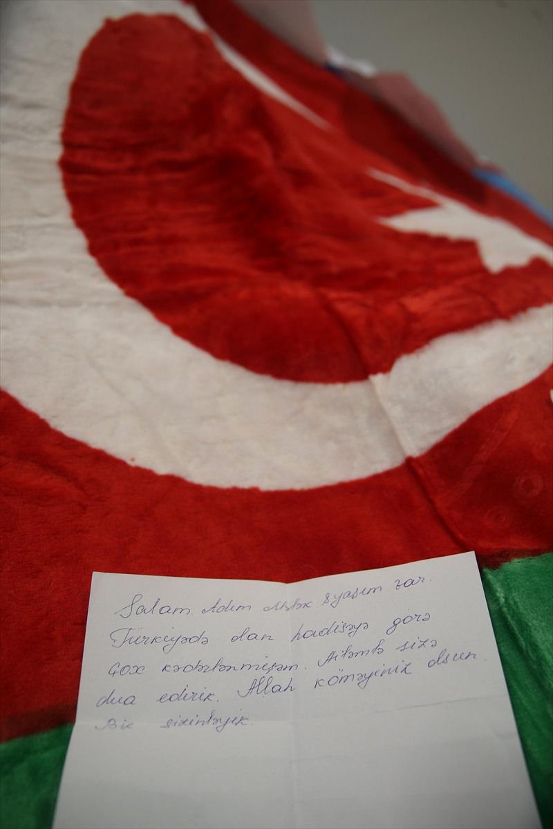 Giysilere iliştirilen bir notta, “Merhaba çocuklar benim adım Reyhan. Azerbaycanlı bir kızım. İnşallah sizler de evinize dönersiniz. Allah’ım sizleri korusun.” ifadesi yer alıyor.
