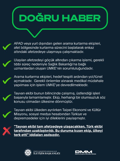 – Tayvanlı arama kurtarma ekibi, Türk ekiplerle sorun yaşadığı için ülkeden ayrıldı.