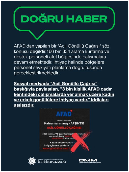 Kahramanmaraş depremi sonrası Türkiye yaralarını sarmak için seferber olurken, boş durmayan provokatörler, çalışmaları aksatmak, siyasi kazanç elde etmek için sayısız yalan haber servis etmeye koyuldu.