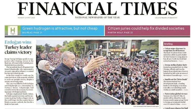 – New York Times: Cumhurbaşkanı Erdoğan, enflasyon, depremler ve zorlu seçim yarışına rağmen yeniden seçildi. Kariyerinin en büyük zorluğunu aşarak bir beş yılı daha garantiledi.