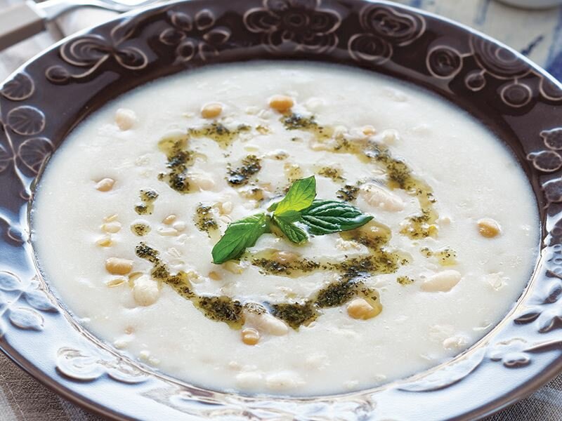 Nohut, fasulye ve buğdayı bir gece önceden suda bekletin. Ertesi günü sularını değiştirip ayrı tencerelerde yumuşayana kadar haşlayın. Hepsini aynı tencere içine alıp su ve et suyunu ekleyip kaynamaya bırakın. Un ve yoğurdu bir kasede çırpın. Çorbanın suyundan ekleyin ve karışımı kaynayan çorbaya azar azar ekleyerek karıştırın. Tuzla tatlandırın. 10 dakika kaynatın. Tereyağını tavada eritin. Nane ve pul biber ekleyip karıştırın. Çorbayı kaseye alıp üzerine naneli yağ gezdirin ve sıcak servis yapın.