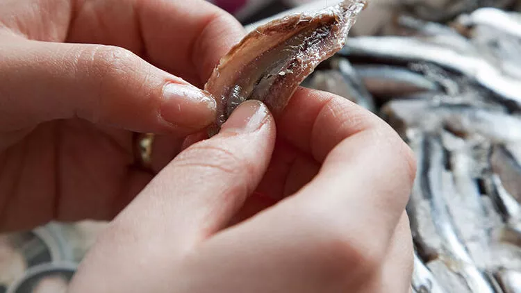 Hamsilerin kafalarını ve kılçıklarını ayıklayın. Kuyruklarını koparmayın.