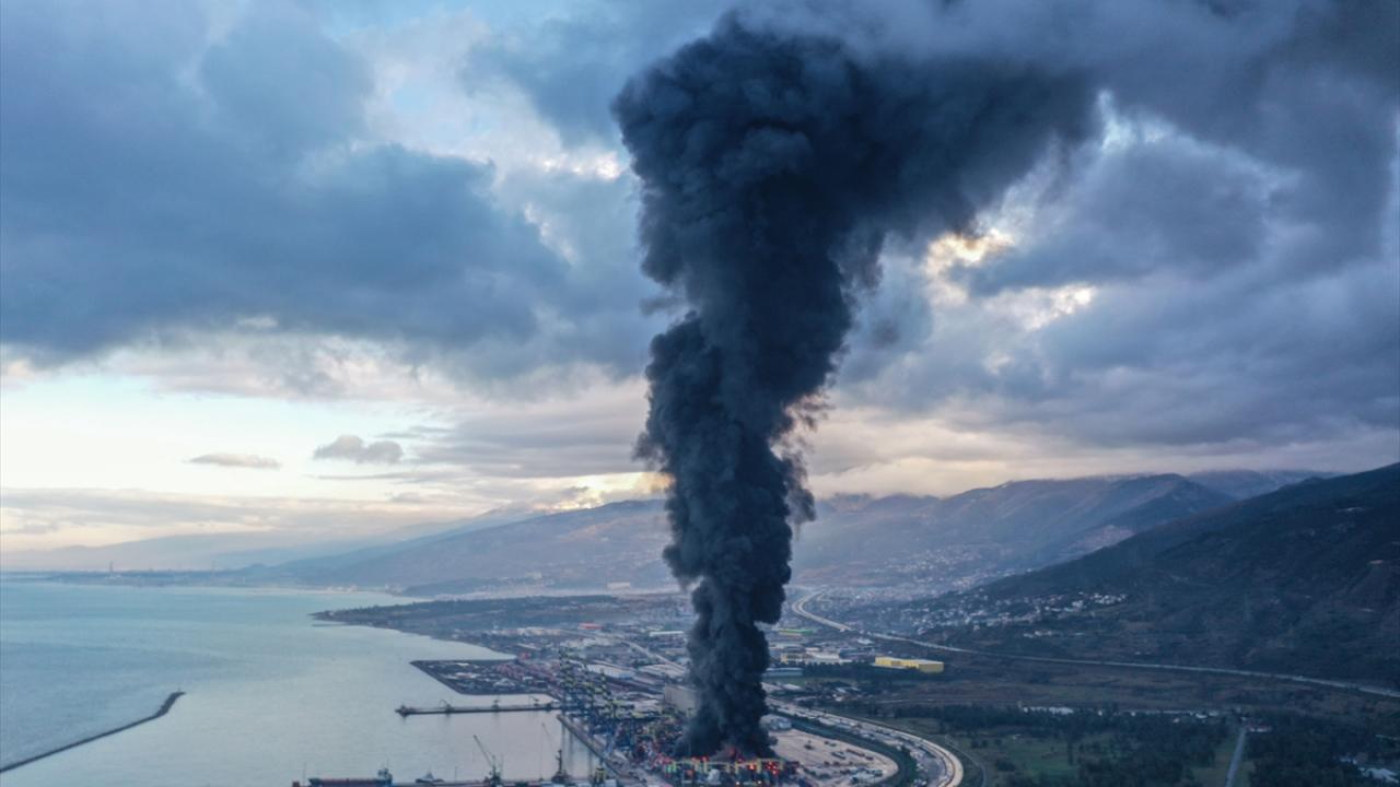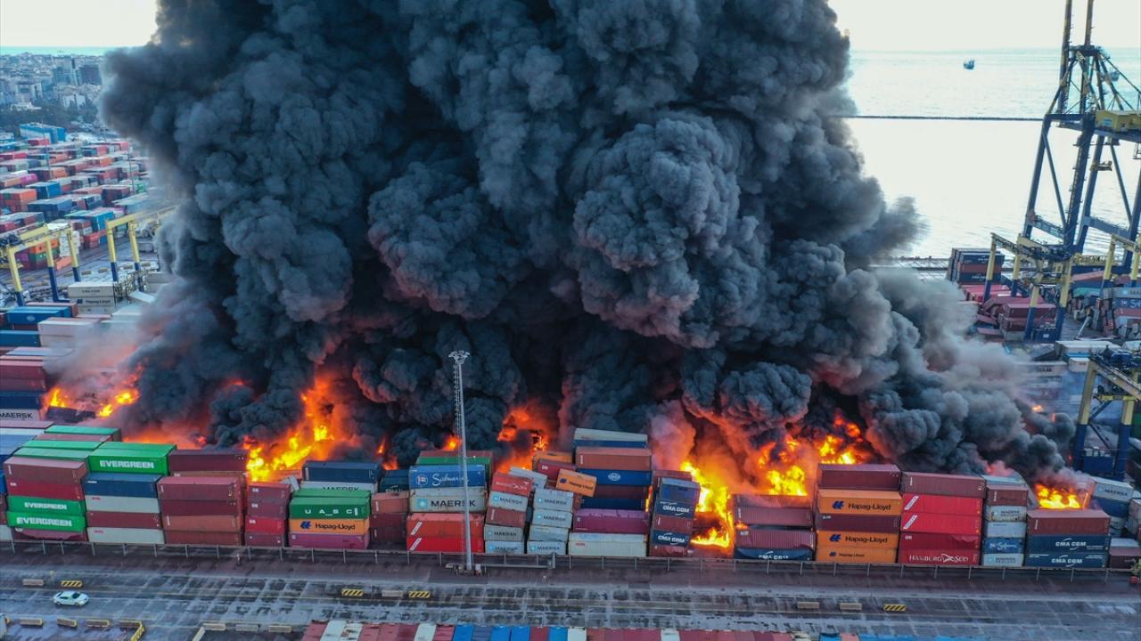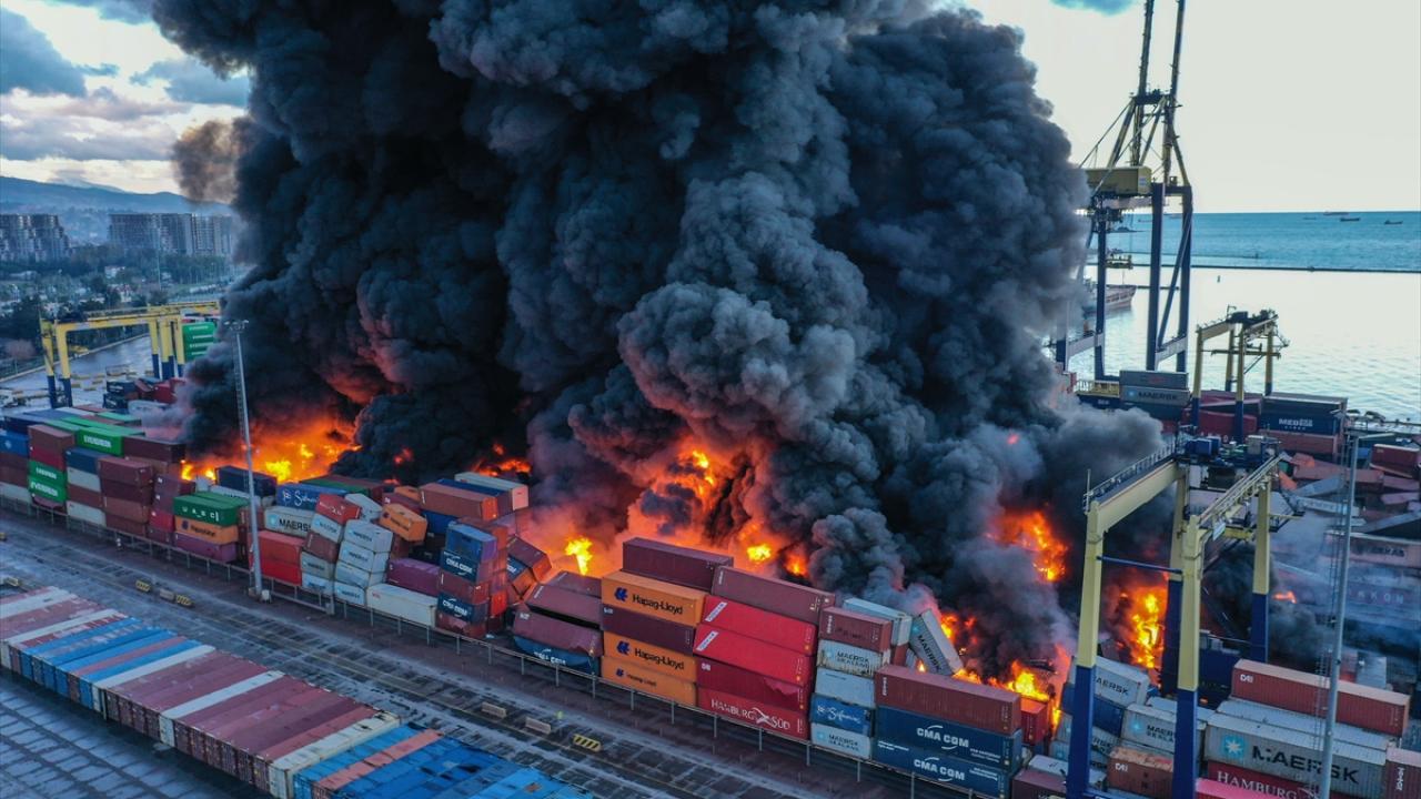 İskenderun Limanı’nda dün depremin ardından devrilen konteynerlerde çıkan yangın sürüyor. Ekiplerin yangını kontrol altına alma çalışmaları devam ediyor.