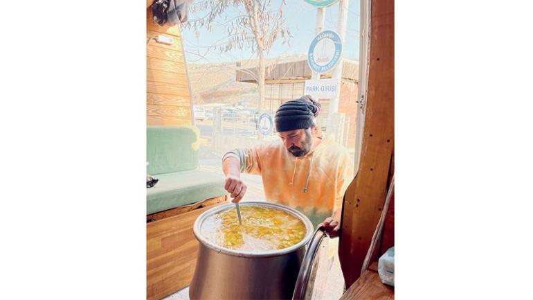 Kazanla yemek dağıtan şarkıcı, bulundukları bölgeyi bir sosyal medya paylaşımıyla duyurdu.