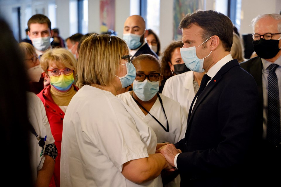 Macron, başkent Paris’in de içinde olduğu Ile-de-France bölgesindeki Corbeil-Essonnes’da Güney Fransa Hastane Merkezi’nde sağlık çalışanlarıyla bir araya gelerek Fransa’nın sağlık sisteminin güncellenmesine ilişkin açıklamalarda bulundu.