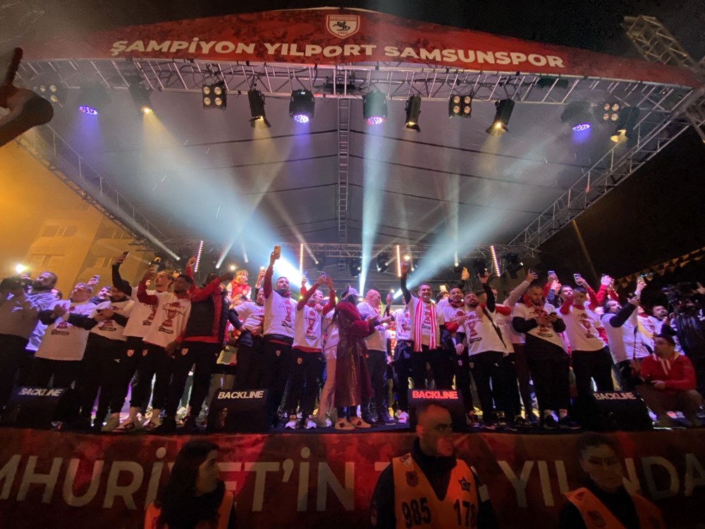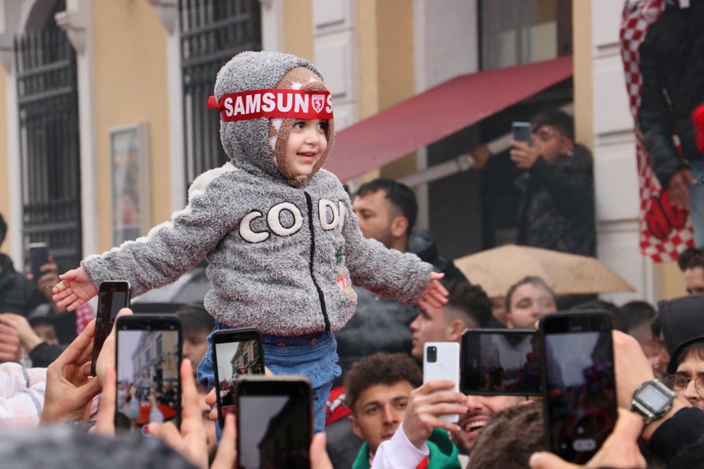 Cumhuriyet Meydanı’nda toplanan vatandaşlar ise ellerindeki meşaleler ve Samsunspor bayraklarıyla kutlamalara katıldı