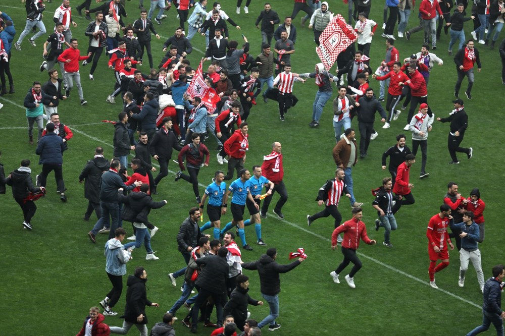Maçın 90. dakikasında çok sayıda taraftarların sahaya girmesi nedeniyle oyun bir süre durdu.