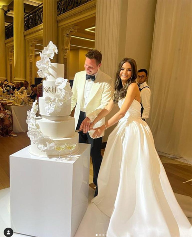 Eski bir model olan Kristen Fowler, düşük omuzlu bir gelinlik tercih etti bu en mutlu gününde. Lüks bir firmanın tasarımı olan beyaz ayakkabılarla tamamladığı gelinliğinin en çok dikkat çeken yanı, sol yanında bulunan derin yırtmacıydı. Saçlarını açık bırakan Fowler, başının üzerine bir taç yerleştirdi ve uzun bir duvak kullandı. Mutluluğu ve heyecanı gözlerinden okunan gelin Kristen’in ve damat Harry Fox’un düğün boyunca sergiledikleri coşkulu halleri dikkat çekti.